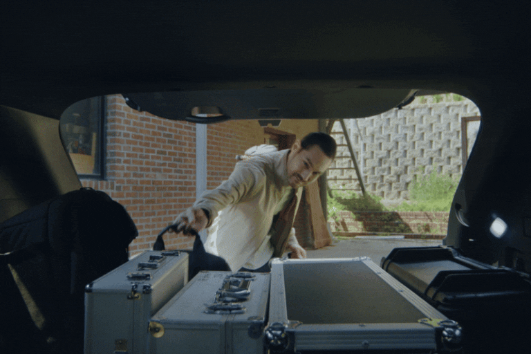 Pull the release lever on the cargo-space wall to fold the 60/40 split rear seatback down. It saves you the inconvenience of leaning or climbing in when handling long or bulky items.